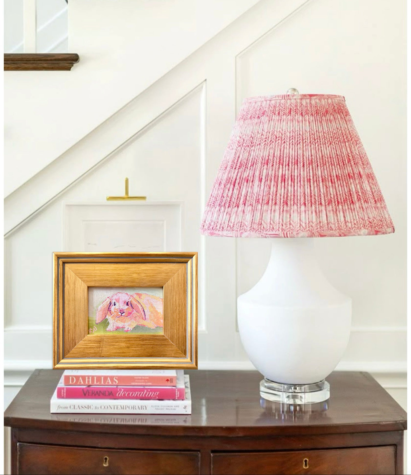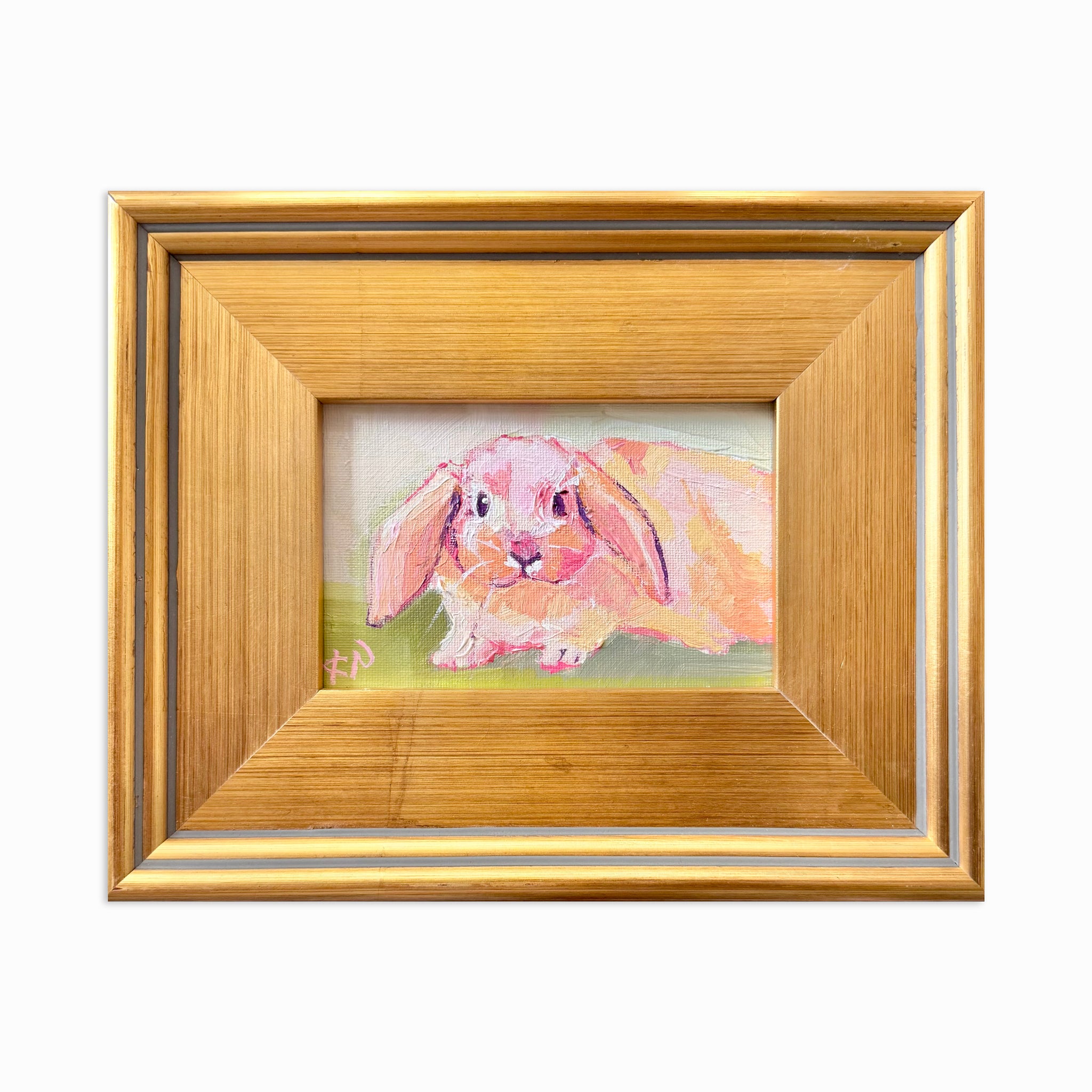 Framed in a lightly aged gold gallery frame and wired for hanging