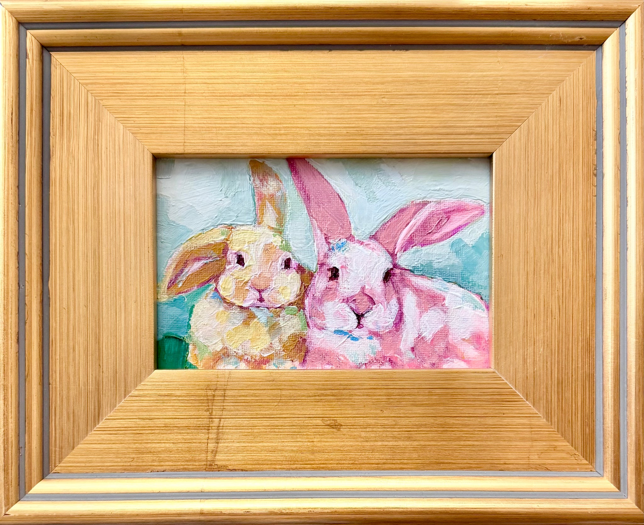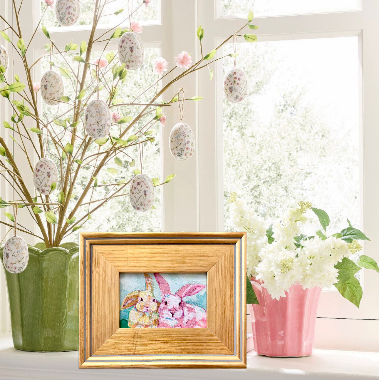 Framed in a lightly aged gold gallery frame and wired for hanging