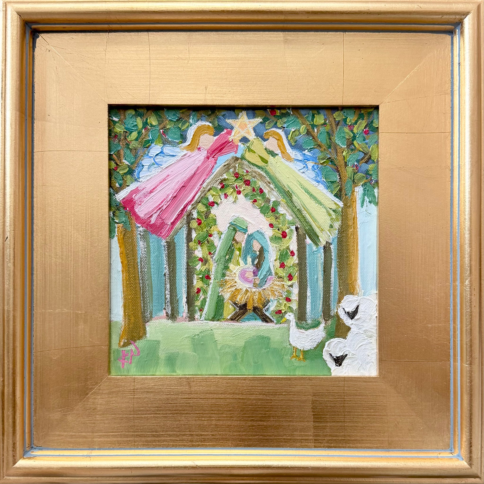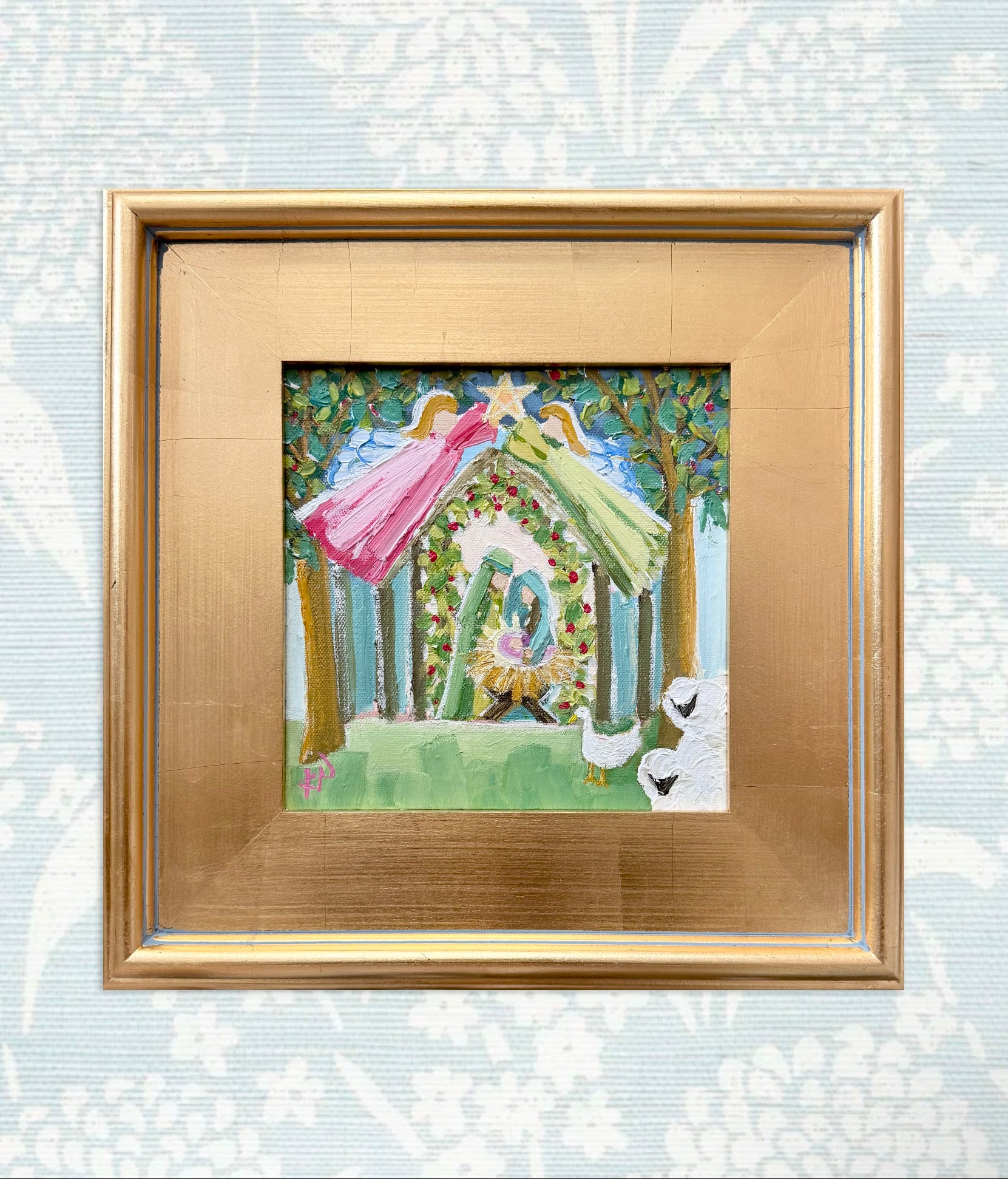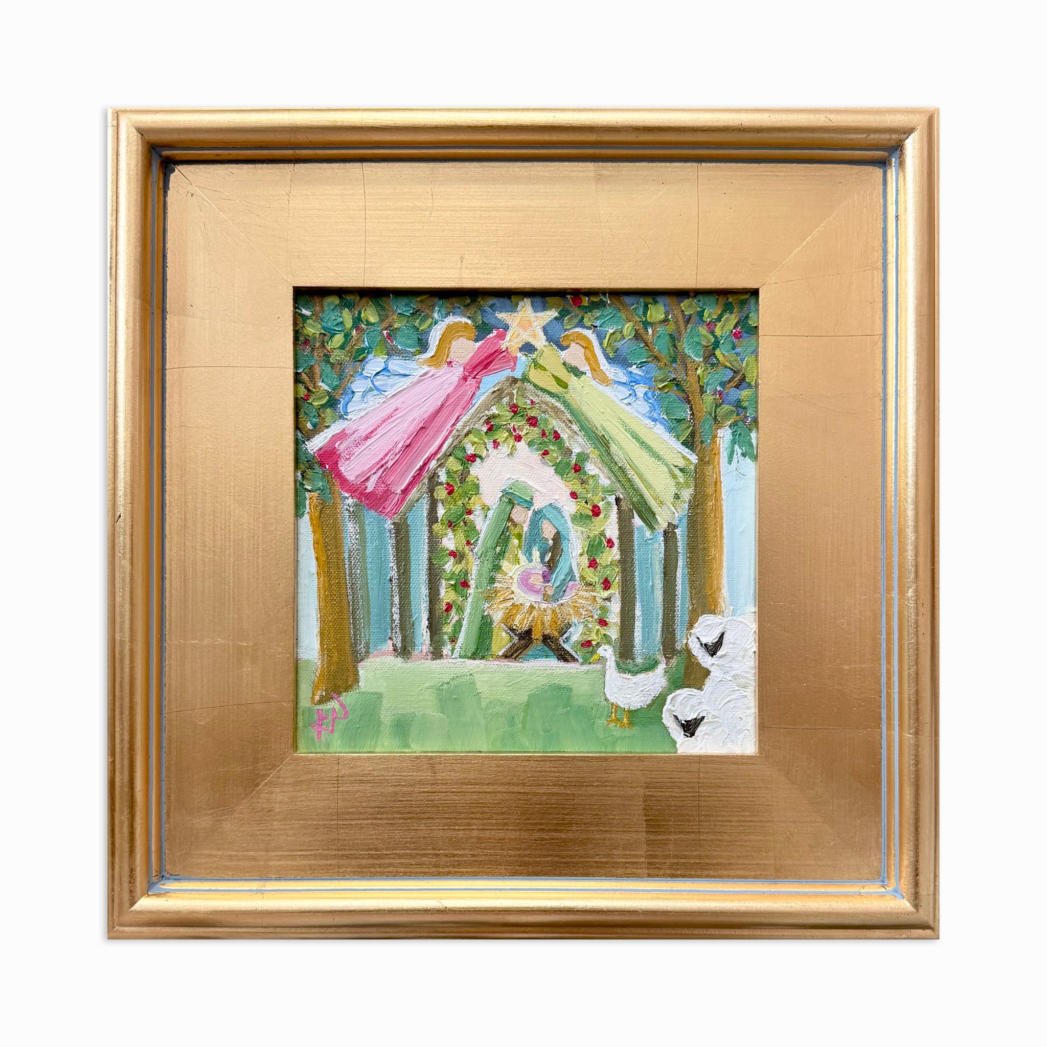 Framed in a lightly aged / antiqued gold gallery frame and wired for hanging