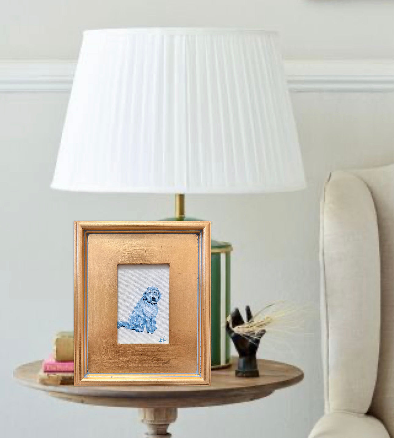 Framed in a lightly aged / antiqued gold gallery frame and wired for hanging