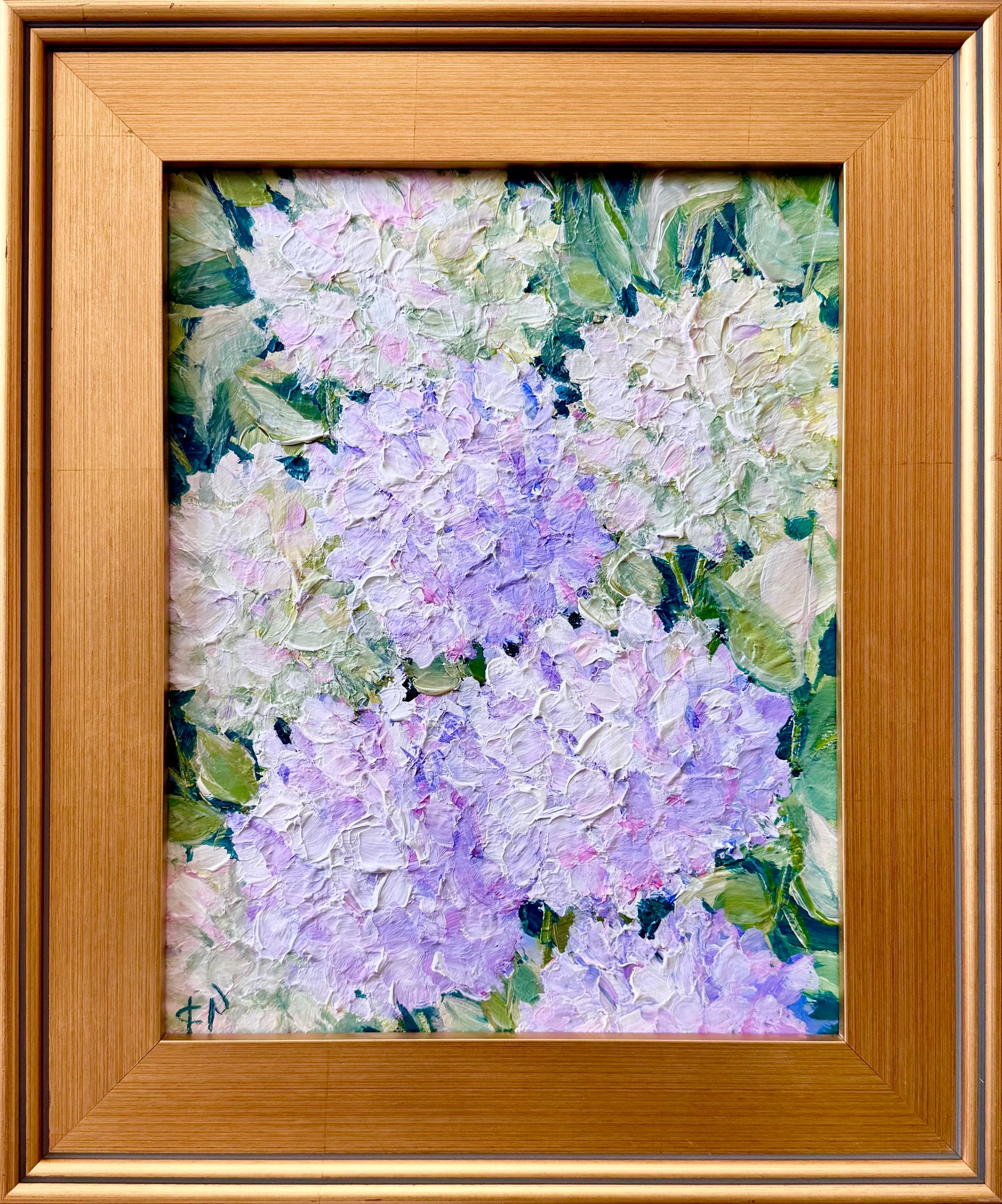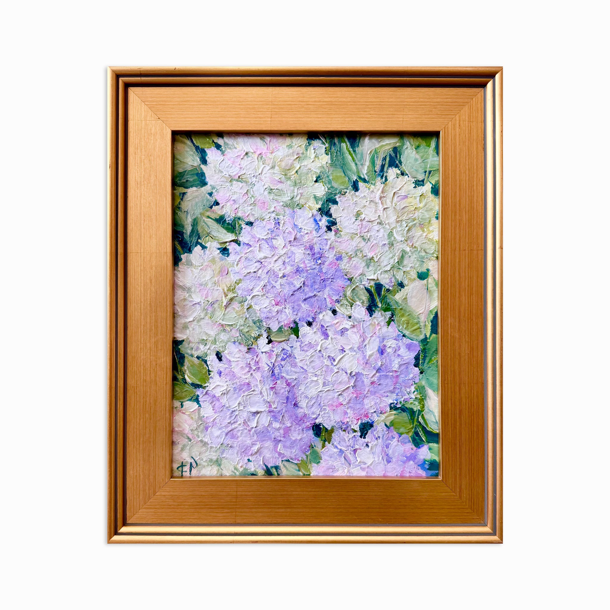 Framed in a lightly aged / distressed gold gallery frame and wired for hanging