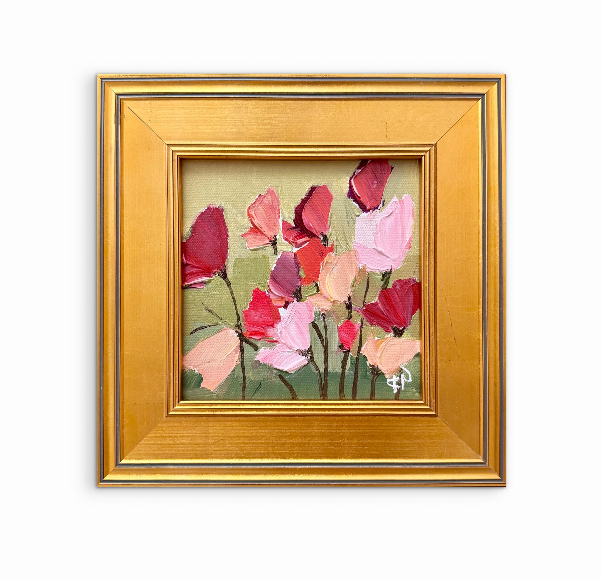Framed in an antiqued custom gold gallery frame and wired for hanging